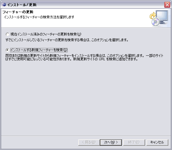 「インストールする新規フィーチャーを検索」を選択してから「次へ」を選択します。